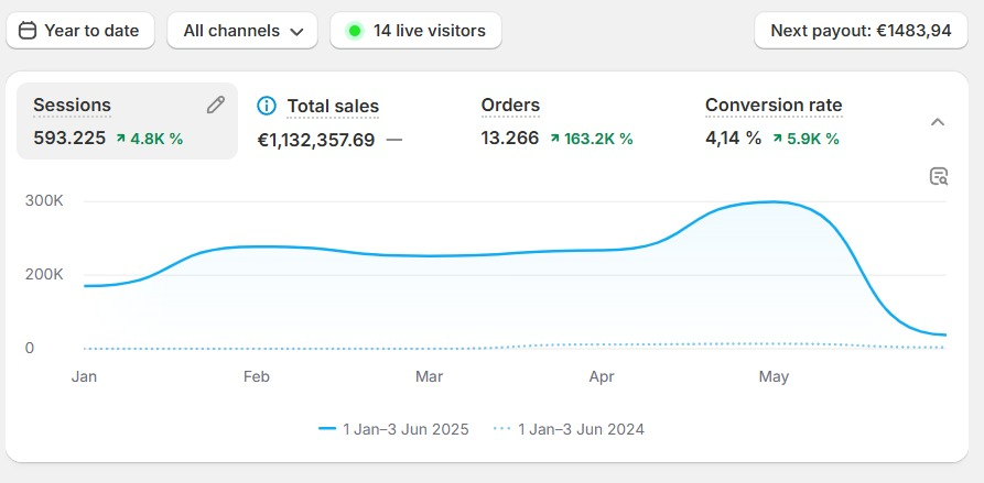 • Total Sales: Over €1.13 Million Year-to-Date (January – June 2025).
